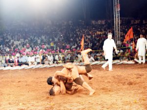 - बऱ्याच वर्षानंतर आनंदवाडीचा आखाडा कुस्ती शौकिनांनी तुडुंब भरला होता. कुस्ती शौकिनांना कोणताही व्यत्यय येऊ नये म्हणून कडक रोषणाईची व्यवस्था चारी बाजूंनी केली होती. त्यामुळे कुस्ती शौकिनांना कुस्ती स्पष्ट दिसत होती.