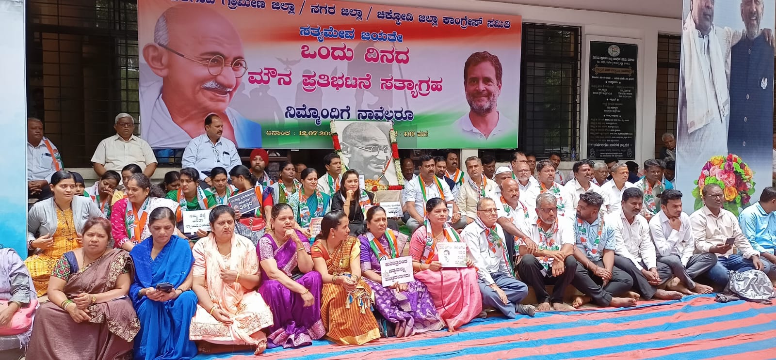 राहुल गांधी यांनी प्रधानमंत्री नरेंद्र मोदी यांना देशाच्या आर्थिक बाबींसंदर्भात प्रश्न विचारले होते. या प्रश्नांना त्यांच्याकडे उत्तर नव्हते. केंद्र सरकार जनतेसमोर उघडे पडल्याने राहुल गांधी यांच्याविरोधात नको नको ते आरोप करत त्यांना कोंडीत अडकविण्याचे प्रयत्न केले जात आहेत. त्यांची खासदारकीही रद्द करण्यात आली आहे, असे असले तरी आपण काँग्रेसचे सर्व कार्यकर्ते त्यांच्या पाठीशी आहोत. भाजपकडून सुरू असलेल्या राजकारणाला आपला तीव्र विरोध आहे. यासाठीच हे मौन आंदोलन करण्यात आले असल्याचे सांगण्यात आले. या आंदोलनात जिल्हा काँग्रेसचे पदाधिकारी, कार्यकर्ते मोठ्या संख्येने उपस्थित होते.