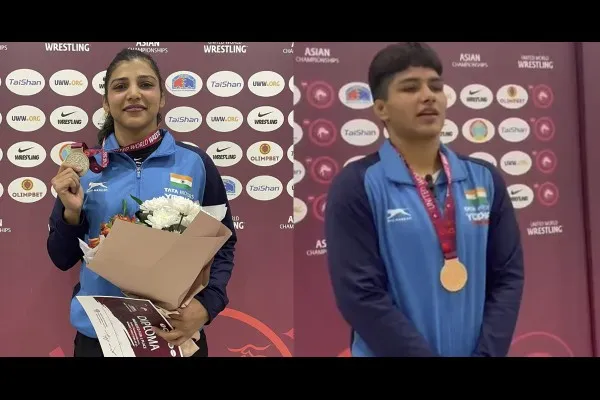 आशियाई कुस्ती चॅम्पियनशिपमध्ये भारताच्या निशा दाहिया व प्रिया यांनी आपापल्या गटात अनुक्रमे रौप्य व कांस्यपदक पटकावले तर भारताची युवा मल्ल अंतिम पांघलने सुवर्णपदकाच्या लढतीत प्रवेश मिळविला आहे. भारताला आतापर्यंत या स्पर्धेत सहा पदके मिळाली असून आणखी पाच पदके मिळण्याची अपेक्षा आहे.