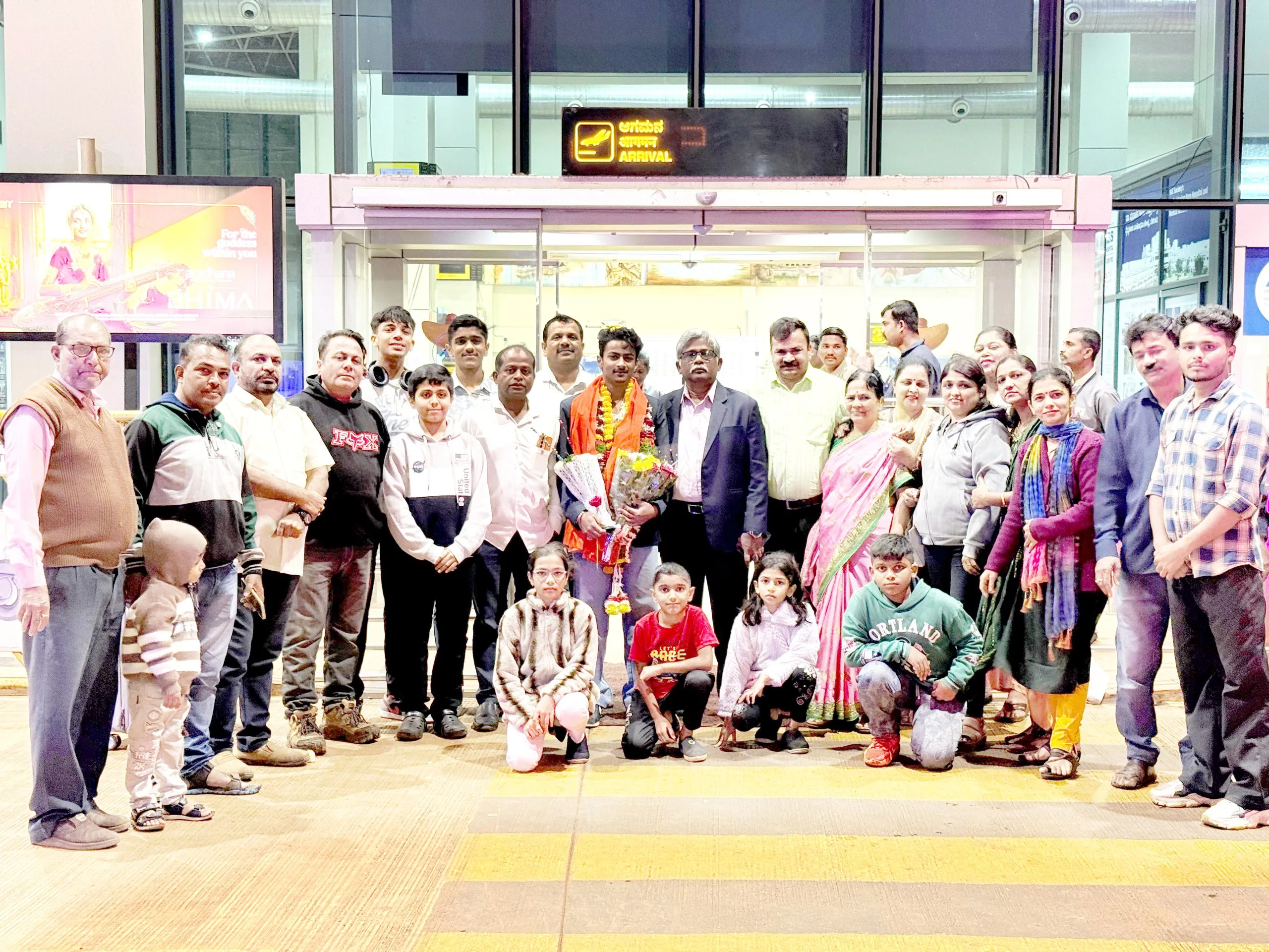बेळगाव : कोरिया येथे पार पडलेल्या 20 व्या एशियन स्पर्धेत भारतीय संघातून निवड झालेला बेळगांवचा स्केटर देवेन बामणे यांनी चमकदार कामगिरी करत 8 व्या स्थानपर्यंत मजल मारली. त्याचा बेळगाव विमानतळावर सत्कार करण्यात आला. बेळगाव विमानतळावर आगमन होताच विमानतळ प्रशासन प्राधिकरना तर्फे स्वागत व सत्कार एस. त्यागराजन (बेळगांव विमानतळ संचालक), ब्रह्मानंद रेड्डी (विमानतळ टर्मिनल व्यवस्थापक एएआय बेळगांव) बेक्कल, कौशिक यांच्या उपस्थित हार व पुष्फगुच्छ देऊन सत्कार करण्यात आला. यावेळी बेळगांव जिल्हा रोलर स्केटिंगचे प्रशिक्षक सुर्यकांत हिंडलगेकर यांनी त्याला शॉल व हार घालून त्याचे अभिनंदन केले व त्यांच्या पुढील वाटचालीस शुभेच्छा दिल्या. यावेळी देवेनचे आई ज्योती बामणे, वडील विनोद बामणे, लीना कोरिशेट्टी, बसवराज कोरिशेट्टीr, स्मिता मेंडके, श्रीकांत मेंडके, शिवराज, नैना शिवराज, बेळगांव जिल्हा रोलर स्केटिंग संघटनेचे स्केटर्स व पालक वर्ग मोठ्या प्रमाणात उपस्थित होते.