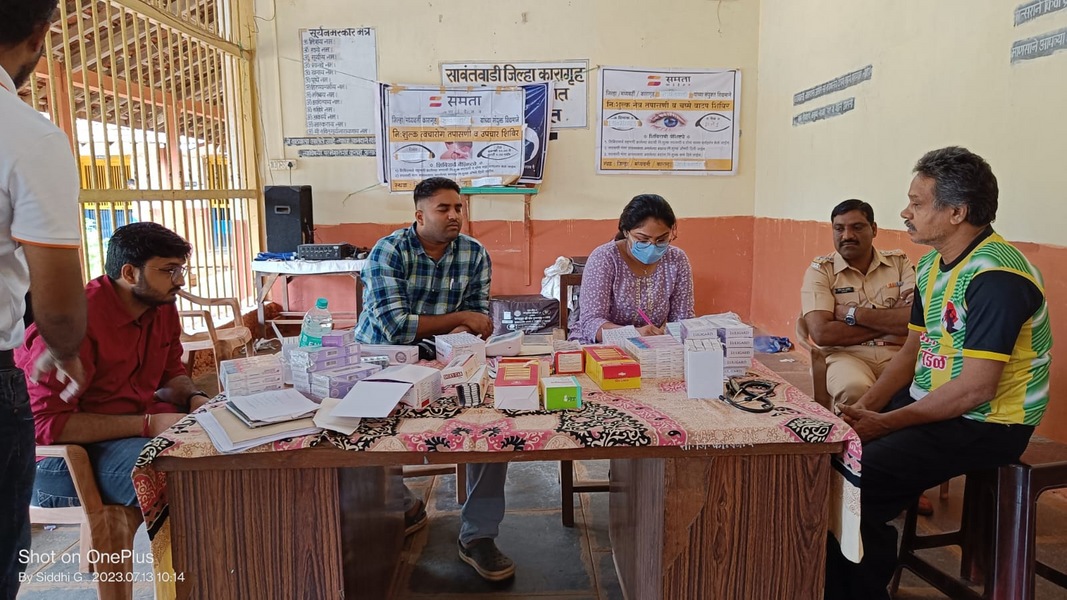 मुंबई येथील समता फाऊंडेशन आणि सावंतवाडी उपजिल्हा रुग्णालय यांच्यावतीने सावंतवाडीतील जिल्हा कारागृह वर्ग २ येथील बंदीवानांसाठी आयोजित करण्यात आलेल्या त्वचा व नेत्र तपासणी उपचार शिबिरात ६५ बंदिवानांची प्राथमिक तपासणी करून त्यांना औषधेही देण्यात आली.