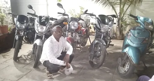 परिस्थितीने गांजलेल्या व्यक्तीने नादुरुस्त दुचाकीच्या दुरुस्तीकरिता पैसे नसल्याने शहरातून पाच दुचाकी चोरल्या. सोलापूर रुग्णालय, पोलीस हेडक्वार्टर व गणेशोत्सव मिरवणुकीदरम्यान त्याने दुचाकी चोरल्याची कबुली दिली असून त्यातील एक दुचाकी पोलिसांची असल्याचे तपासात समोर आले आहे.