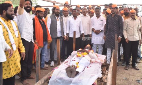 संपूर्ण महाराष्ट्रात मराठा आरक्षणाच्या मागणीसाठी वेगवेगळ्या पद्धतीने, गनिमी काव्याने आक्रमक आंदोलने करण्यात येत आहेत. सोलापुरात तळे हिप्परगा येथील एका मराठा समाज बांधवाने जिवंत चितेवर झोपून मराठा आरक्षणाची मागणी केली. राष्ट्रीय छावा पक्षाचे तालुकाध्यक्ष रतिकांत पाटील यांनी सरणावर झोपून आंदोलन केले आणि राज्य शासनाचा निषेध केला. त्यांच्या या अनोख्या आंदोलन जिल्ह्यात चर्चेचा विषय निघाला आहे.