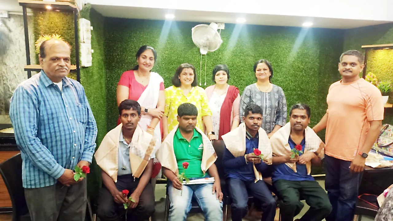 शर्मा स्विट्सचे मालक राजगोपाल शर्मा यांनी त्यांना काम दिले असून त्यांनी त्यांचा विश्वास सार्थ ठरविला आहे. जायंट्स प्राईड सहेलीच्या सदस्यांनी या चौघांचा सत्कार केला. अध्यक्षा आरती शहा यांनी सत्कार करताना त्यांचे अभिनंदन केले. यावेळी रश्मी पाटील, मोनाली शहा व पवन राजपुरोहित उपस्थित होते.
