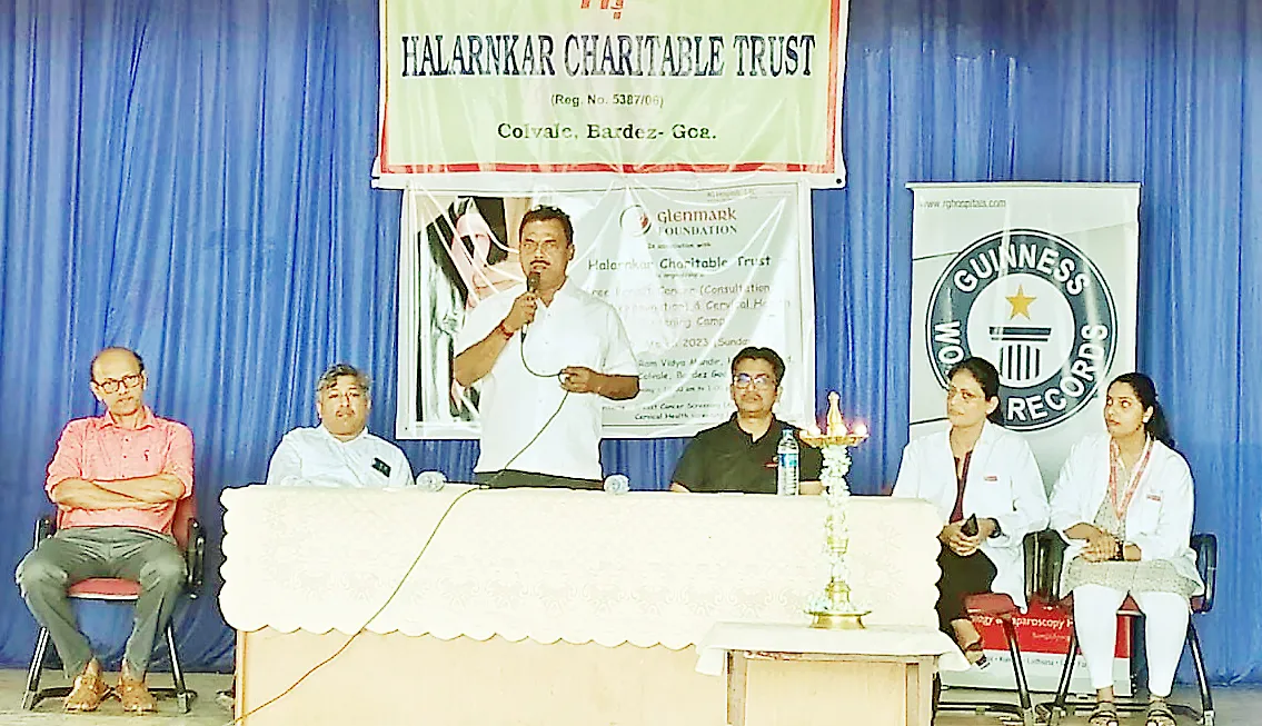 हळर्णकर चॅरिटेबल ट्रस्ट व ग्लेनमार्क फाऊंडेशन यांच्या संयुक्त विद्यमाने आयोजित मोफत कर्करोग तपासणी तसेच आरोग्य तपासणी शिबिर कोलवाळ येथे संपन्न झाले. येथील श्रीराम विद्या मंदिराच्या सभागृहात झालेल्या शिबिरात 30 महिलांनी लाभ घेतला. डॉ. शितल चौधरी व डॉक्टर मयुरी कळंगुटकर यांनी तपासणी व मार्गदर्शन केले. कार्यक्रमाच्या उद्घाटन प्रसंगी व्यासपीठावर मच्छिमार खात्याचे मंत्री नीलकंठ हळर्णकर, ग्लेनमार्क फाऊंडेशनचे पदाधिकारी बाळकृष्ण कामत, रोहित गुप्ता, डॉ. शितल चौधरी, मयुरी कळंगुटकर व ट्रस्टचे अध्यक्ष विशाल देसाई उपस्थित होते. यावेळी मंत्री हळर्णकर म्हणाले, प्रत्येकाने आपल्या आरोग्याची काळजी घेणे गरजेचे आहे. कुठल्याही आजारावर वेळीच उपचार केल्यास शरीराची हानी होत नाही. स्तन कर्करोगासारखे आजार मोठ्या प्रमाणात वाढत असून ही एक चिंतेची बाब आहे. यावर वेळीच उपचार करून घेण्याची नितांत अवश्य असल्याचे मंत्री म्हणाले. कार्यक्रमाचे सूत्रसंचालन विशाल देसाई यांनी केले.