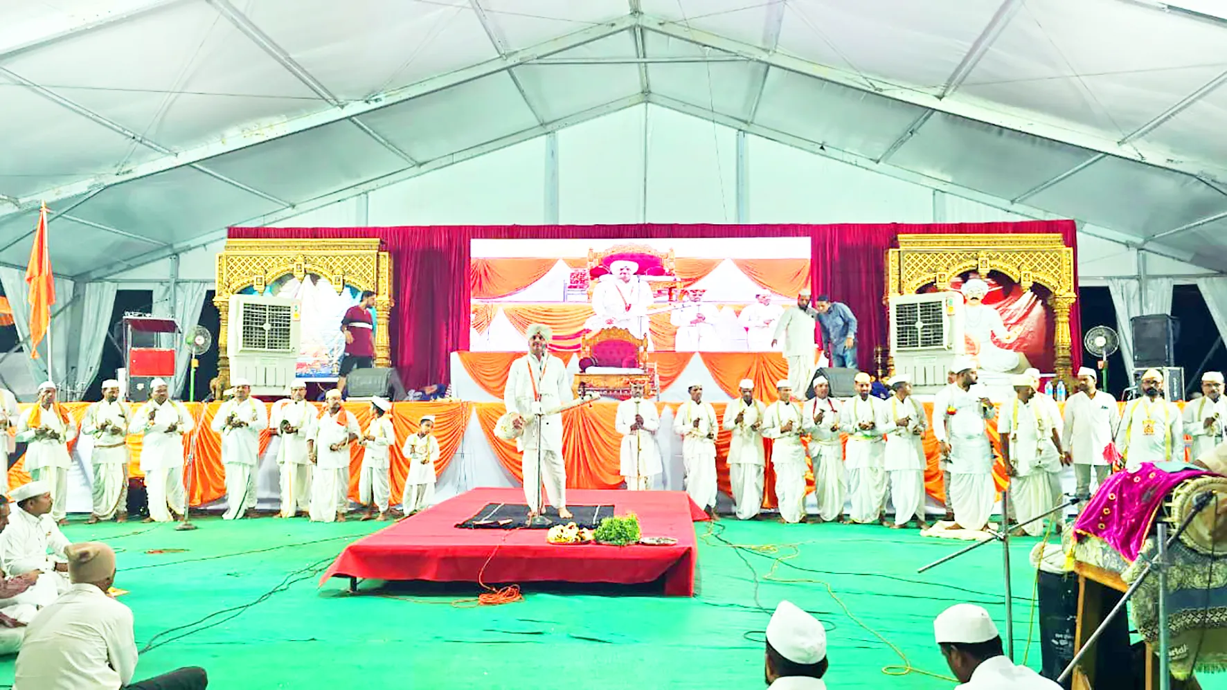 बेळगाव : अनगोळ येथील एसकेई एज्युकेशन स्पोर्ट्स अकॅडमीच्या मैदानात जगद्गुरु श्री संत तुकाराम महाराज सदेह वैकुंठगमन सोहळ्याअंतर्गत तुकोबांच्या अखंड गाथा पारायण सोहळ्याला प्रारंभ झाला आहे. या निमित्ताने काकड आरती, गाथा वाचन, हरिपाठ, प्रवचन, कीर्तन आदी भरगच्च कार्यक्रम होत आहेत. रविवारी पहाटे काकड आरती, त्यानंतर तुकाराम महाराजांच्या पादुकांना अभिषेक, भागवत ध्वजारोहण आणि त्यानंतर तुळसी पूजन झाले. तुकाराम महाराजांचे 11 वे वंशज श्री गुरु पुंडलिक महाराज देहूकर यांच्या हस्ते तुकोबांच्या अखंडा गाथा पारायण सोहळ्याला प्रारंभ झाला. या गाथा पारायण सोहळ्याच्या पहिल्या दिवशी भाविक वारकरी मोठ्या संख्येने उपस्थित होते.