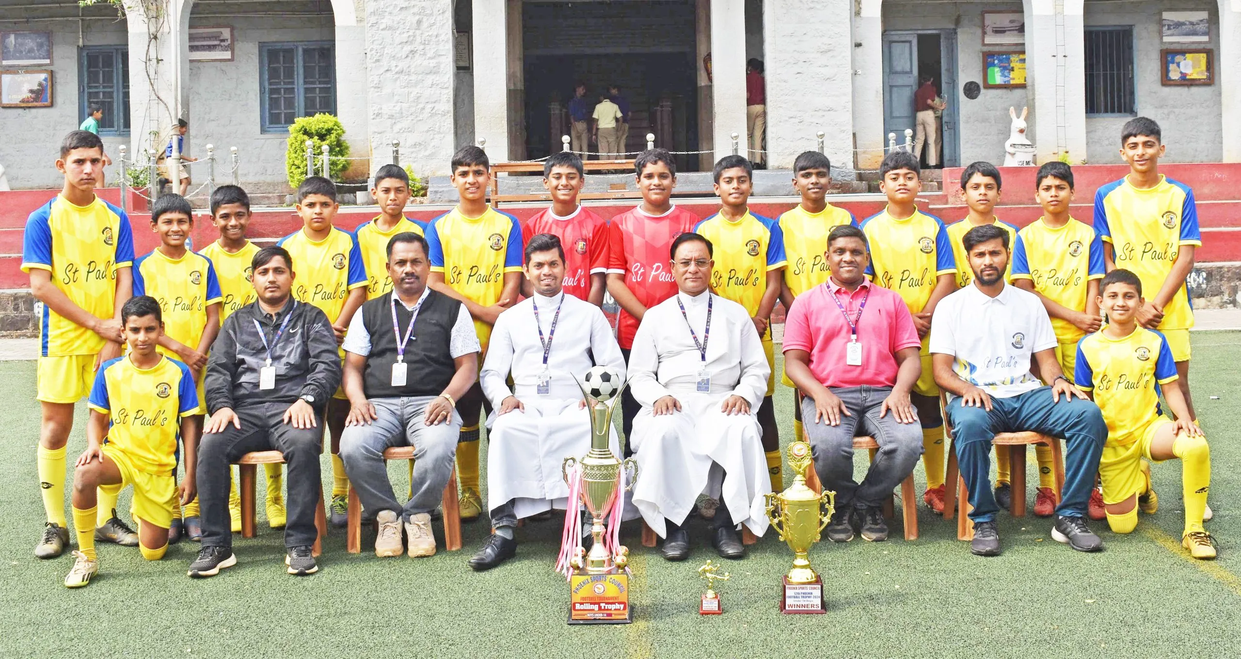 या विजयी संघात शॉन पेस, सुमित गाणगेकर, यशोधन गंधाडे, विराट भोसले, अहम्मद पठाण, श्रीधन गंधाडे, सकलीन मुल्ला, रियान कलादगी, प्रणव पिल्ले, अब्दुल मतीन, अराध्य नाकाडी, जर्मन डिसोजा, इथन डिसोजा, वेदांत जाधव, अलविन मस्कारेन्स, श्रेयेस चिन्नी यांचा समावेश आहे. या संघाला शाळेचे मुख्याध्यापक फादर सिमन फर्नांडीस, उपमुख्याध्यापक फादर अॅल्ड्रो डिकोस्टा, क्रीडा शिक्षक अॅन्थोनी डिसोजा, बालेश, आशिक सरकार व संघाचे प्रशिक्षक अखिलेश अष्टेकर यांचे मार्गदर्शन लाभले.