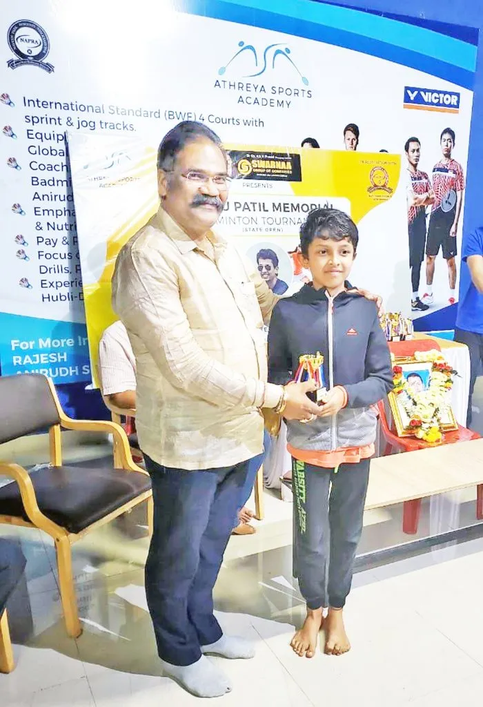 11 वर्षाखालील मुलांच्या गटात एकेरीत हर्दिन असुंडी याने दुसऱया सामन्यात हर्दिनने विश्वासचा (टीएससी अकादमी) 30-18 तर दुसऱया सामन्यात हर्दिनने सात्विर बागलकोटचा 30-19, उपांत्यपूर्व फेरीत हर्दिनने चेतनकुमार हावेरी याचा 30-15 अशा गुण फरकाने पराभव करीत उपांत्य फेरीत प्रवेश केला. उपांत्य फेरीत हर्दिनने यश देसाई टीएससी याचा 21-10, 21-11 असा पराभव करून अंतिम फेरीत प्रवेश केला. पण अंतिम सामन्यात अग्रनामांकित रशिक बी. के. (एनएमबीए) याने हर्दिक असुंडीचा 21-8, 21-10 असा पराभव केल्याने हर्दिनला उपविजेतेपदावर समाधान मानावे लागले. तनिष्का व हर्दिन या दोघांना बॅडमिंटन प्रशिक्षक भूषण अणवेकर यांचे मार्गदर्शन तर बीडीबीएचे सचिव अशोक पाटील यांचे प्रोत्साहन लाभत आहे.