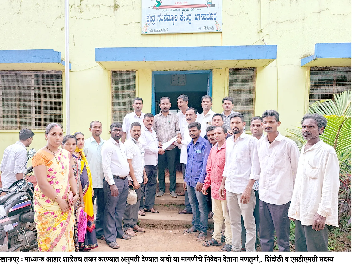 खानापूर तालुक्यात 160 शाळांना मध्यान्ह आहार एनजीओमार्फत पुरवण्यात येतो. हा आहार सकाळी लवकर डब्यात घालून शाळांना पुरवला जातो. दुपारी दीडनंतर विद्यार्थ्यांना हा आहार वितरीत करण्यात येतो. सदर आहाराचा दर्जाही निकृष्ट असल्याने अनेक विद्यार्थ्यांची तब्येत बिघडत आहे. त्यामुळे पूर्वीप्रमाणे शाळेतच मध्यान्ह आहार तयार करण्यास परवानगी देण्यात यावी, अशी मागणी करण्यात आली आहे.