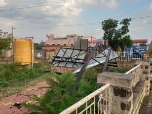 वादळी वारे आणि पावसामुळे लाखो रुपयांचा फटका बसला. यातच निपाणी शहरातील विद्या मंदिर, म्युनिसिपल हायस्कूल, मराठा मंडळ संचलित इंग्लिश मिडीयम स्कूल यासह अनेक संकुलांचे नुकसान झाले आहे. शाळेवरील पत्र्याचे शेड उडून गेले आहेत. विद्या मंदिर शाळा इमारतीवरील पत्र्याचे शेड नजीकच्या भिमनगर मुख्य रस्त्यावर जाऊन पडले. सुदैवाने यात कोणतीही जीवितहानी घडली नाही. शाळांसोबतच निपाणीतील अनेक घरांचे नुकसान झाले आहे. घरावरील पत्र्याचे शेड तर शंभर फुटावर जाऊन पडल्याचे दिसून आले.