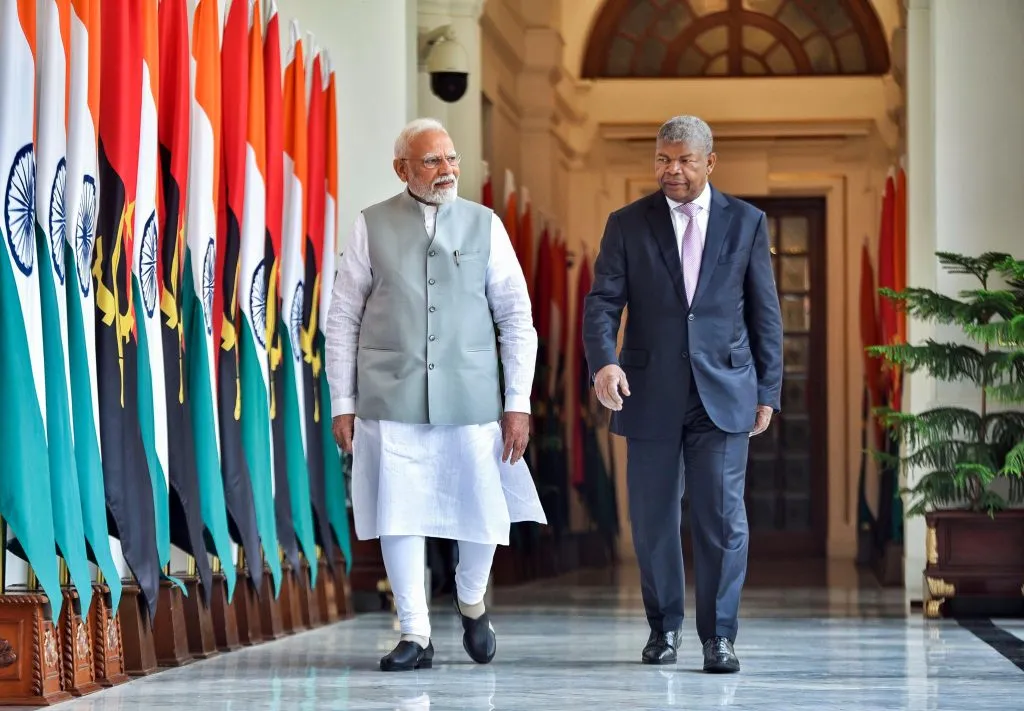 पंतप्रधान नरेंद्र मोदी यांनी शनिवारी हैदराबाद हाऊस येथे अंगोलाचे राष्ट्रपती जोआओ मॅन्युएल गोन्साल्विस लॉरेन्को यांची भेट घेतली. यादरम्यान दोन्ही नेत्यांमध्ये द्विपक्षीय बैठकही झाली. मी राष्ट्रपती लॉरेन्को आणि त्यांच्या शिष्टमंडळाचे भारतात मनापासून स्वागत करतो. हा एक ऐतिहासिक क्षण आहे, असे पंतप्रधान मोदी पुढे म्हणाले.