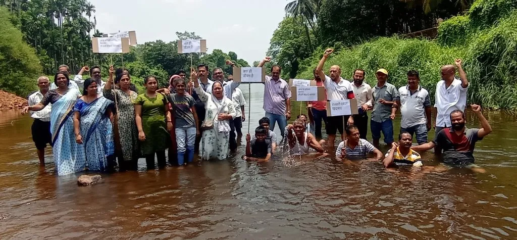 स्थानिकांनी पाण्यासाठी नदी पात्रात केले जलआंदोलन : स्थानिकासोबत राहाणार : आमदार प्रवीण आर्लेकर यांचे आश्वासन
