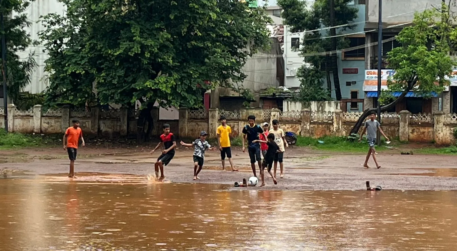 बेळगाव : बेळगाव व खानापूर तालुक्यात झालेल्या धुवाधार पावसाने बुधवारी शाळा तसेच पीयूसी कॉलेजना सुटी देण्यात आली. त्यामुळे शालेय विद्यार्थ्यांनी पावसामध्ये फुटबॉल खेळण्याचा आनंद लुटला. बऱ्याच ठिकाणी भरपावसात विद्यार्थी खेळत असल्याचे चित्र दिसत होते. मान्सूनने शहरासह उपनगरांना झोडपून काढले आहे. त्यामुळे सर्वत्र पाणीच पाणी झाले. बेळगाव व खानापूर तालुक्यात काही ठिकाणी नद्या व नाल्यांना पाणी आल्याने संपर्क रस्ते पाण्याखाली गेले आहेत. त्यामुळे ये-जा करणे शक्य नसल्याने शिक्षण विभागाने सुटी जाहीर करण्याची मागणी जिल्हाधिकाऱ्यांकडे केली. त्यामुळे जिल्हाधिकाऱ्यांनी अंगणवाडी ते बारावीच्या विद्यार्थ्यांना सुटी जाहीर केली. सुटी मिळाल्याने विद्यार्थीवर्गातून आनंद व्यक्त करण्यात येत होता. घरी राहण्यापेक्षा क्रिकेटचा आनंद घेणारे विद्यार्थी दिसून आले. शहरातील सरदार्स हायस्कूल ग्राऊंड, धर्मवीर संभाजी उद्यान आदी मैदानांवर विद्यार्थी खेळांचा आनंद घेत होते. काही ठिकाणी क्रिकेट तर काही ठिकाणी फुटबॉल व व्हॉलिबॉल खेळताना तरुणाई दिसत होती.