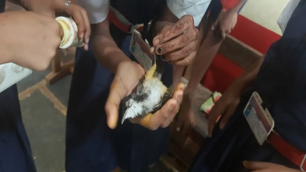 मालवण तालुक्यातील ‘ओझर विद्यामंदिर कांदळगाव’ प्रशालेतील विद्यार्थिनींनी तन्वी कुराडे आणि वैष्णवी आंगणे शाळेकडे चालत येतं असताना रस्त्यावर एक जखमी चिमणी तडफडत असताना आढळली. निरीक्षण केल्यावर त्यांना ती चिमणी जखमी असल्याचे आढळले. विद्यार्थ्यीनींनी त्या जखमी चिमणीला शाळेमध्ये आणले. आणि शिक्षकांना सर्व हकीकत सांगितली. शिक्षकांच्या मदतीने विद्यार्थिनींनी त्या चिमणीला पाणी पाजले. चिमणीच्या जखम झालेल्या भागावर हळद लावून चिमणीची सुश्रुषा केली. चिमणीला अभय मिळाले. सेवा करूनही चिमणी दिवसभरात उडू शकली नाही, म्हणून इयत्ता सातवीमध्ये शिक्षण घेत असलेली तृप्ती दीपक परुळेकर या विद्यार्थिनीने त्या चिमणीला घरी नेऊन तिची पुन्हा सेवा केली. तिच्या प्रामाणिक सेवेला यश मिळाले. सकाळपर्यंत त्या चिमणीला बरे वाटताच चिमणी नैसर्गिक अधिवासात स्वतः उडून गेली. आपल्या प्रयत्नांमुळे चिमणी उडून गेल्याची पाहताच तृप्तीचे मनही तृप्त झाले. ‘प्राणीमात्रांवर प्रेम करावे’ हे वचन प्रत्यक्षात अमलात आणल्याबद्दल तृप्ती परुळेकर, तन्वी कुराडे आणि वैष्णवी आंगणे या विद्यार्थिनींचे ओझर विद्यामंदिरचे मुख्याध्यापक, शिक्षक व शिक्षकेतर कर्मचारी यांनी अभिनंदन केले.