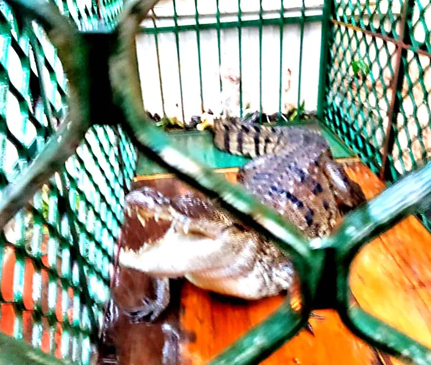 डिचोली : व्हाळशी डिचोली येथील श्री देव तळेश्वर मंदिराच्या बाजूलाच असलेल्या तळ्यातील लावलेल्या पिंजऱ्यात काल शुक्रवार दि. 21 जून रोजी सकाळी मगर अडकली. वन खात्याला या तळ्यातील मगरीला पकडण्यात यश आले, पण या तलावात आणखी दोन मगरी असल्याचा दावा स्थानिक लोकांनी केला असून याही मगरींचा बंदोबस्त करावा, अशी मागणी केली आहे.