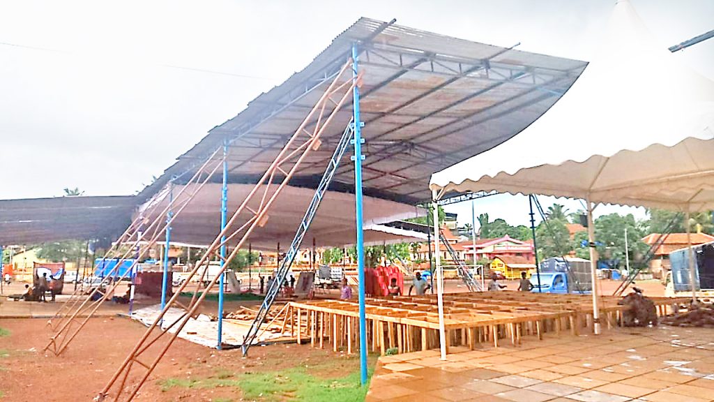 माशेल : माशेल येथील प्रसिद्ध चिखलकाला राज्य उत्सव म्हणून पर्यटन खात्यातर्फे जाहीर करण्यात आले असून या पार्श्वभूमीवर 28 ते 30 जून असे तीन दिवस चिखलकाल्यानिमित्त विविध कार्यक्रमांचे आयोजन करण्यात आले आहे. द्वादशीच्या दिवशी येथील देवकीकृष्ण मैदानावर चिखलकाला साजरा करण्यात येणार आहे. या उत्सवानिमित्त मैदानावर भव्य मंडप उभारण्याचे काम सुरु झाले असून एकंदरीत तयारी अंतिम टप्प्यात आली आहे. बुधवार 28 रोजी रात्री 8 वा. प्रसिद्ध गायक राहुल देशपांडे यांचा गायनाचा कार्यक्रम होणार आहे. सांस्कृतिक कार्यक्रमांबरोबरच खाद्य पदार्थांच्या स्टॉल्ससाठी जागा नियोजित करण्यात आली आहे. चिखलकाला खेळण्याच्या जागी सभोवताली बॅरिकेटस घालण्यात आले असून देवकीकृष्ण मंदिराची आकर्षक विद्युत रोषणाईने सजावट करण्यात आली आहे. गुरुवार 29 रोजी एकादशीच्या दिवशी दुपारी 11.45 वा. स्थानिकांतर्फे चोवीस तासांच्या अखंड भजनी सप्ताहाला सुरुवात करण्यात येईल. या सप्ताहांतर्गत रात्री प्रसिद्ध गायक कलाकारांचा भजनाचा कार्यक्रम होणार आहे. शुक्रवार 30 रोजी दुपारी 11.45 वा. चिखलकाल्याला सुरुवात होईल. यंदा हा उत्सव राज्य पातळीवर होणार असल्याने उत्सवाची मोठ्या प्रमाणात प्रसिद्धी तसेच देशविदेशातील पर्यटकांनाही जाहिरातीच्या माध्यमातून या उत्सवाकडे आकर्षित करण्यात आले आहे. एकूणच चिखलकाल्याचे आयोजनाचे पर्यटन खात्यातर्फे जय्यत तयारी करण्यात आली आहे.