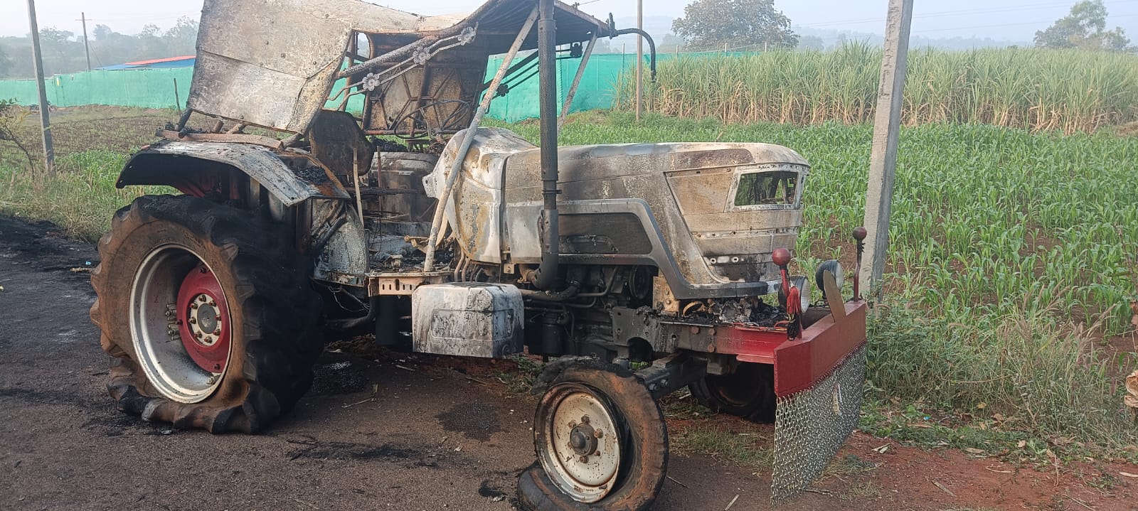 बेळगाव : राजगोळी (ता. चंदगड) येथील हेमरस साखर कारखान्याला ऊस भरून जाणारा ट्रॅक्टर गुरुवारी रात्री जाळण्यात आला. या घटनेत ट्रॅक्टरचे इंजीन पूर्णपणे जळाले आहे. बोडकेनहट्टीनजीक गुरुवारी रात्री ऊस वाहतूक करणाऱ्या ट्रॅक्टरला अज्ञातांनी आग लावली आहे. यामध्ये ट्रॅक्टरचे इंजीन पूर्णपणे जळून खाक झाल्याने वाहन मालकाला मोठा फटका बसला आहे. मागील काही दिवसांपासून महाराष्ट्रात स्वाभिमानी शेतकरी संघटनेने आंदोलन हाती घेतले आहे. विविध ठिकाणी ऊस वाहतूक करणाऱ्या वाहनांची अडवणूक केली जात आहे. त्यामुळे हे कृत्य शेतकरी संघटनेने केले आहे की समाजकंटकांनी? याबाबत संभ्रम निर्माण झाला आहे. साखर कारखान्यांच्या गळीत हंगामाला प्रारंभ झाला आहे. त्यामुळे विविध ठिकाणी ऊसतोडणी सुरू झाली आहे. त्यामुळे ऊस वाहतूक करणारे ट्रक आणि ट्रॅक्टर धावू लागले आहेत. मात्र, शेतकरी संघटनेच्या आंदोलनाचा फटका वाहनचालकांना बसू लागला आहे. मागीलवर्षीचे उसाचे 400 रु. व चालू वर्षीच्या गळीत हंगामाला साडेतीन हजारची पहिली उचल द्यावी, या मागणीसाठी स्वाभिमानी शेतकरी संघटनेचे आंदोलन सुरू आहे. दरम्यान, निर्णय जाहीर केल्याशिवाय ऊसतोड करायची नाही, असा इशाराही संघटनेने दिला आहे. मात्र, गळीत हंगामाला प्रारंभ झाल्याने ऊसतोडणीसह वाहतूकही सुरू आहे. मात्र, बोडकेनहट्टीनजीक वाहतूक करणाऱ्या ऊस ट्रॅक्टरला अज्ञातांनी आग लावली आहे. त्यामुळे ट्रॅक्टरचे नुकसान झाले आहे.