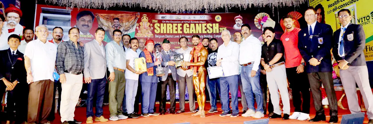बेळगाव : मध्यवर्ती सार्वजनिक श्री गणेशोत्सव मंडळ झेंडा चौक मार्केट व बेळगाव शरीरसौष्ठव संघटना यांच्या संयुक्त विद्यमाने 21 व्या श्री गणेश ग्रामीण विभागासाठी मर्यादीत शरीरसौष्ठव स्पर्धेत पॅलीहॅड्रोजनच्या सुनील भातकांडेने आपल्या पिळदार शरीराच्या जोरावर श्री गणेश हा मानाचा किताब पटकाविला. रामनाथ मंगल कार्यालय येथे घेण्यात आलेल्या बेळगाव ग्रामीणस्तरीय शरीरसौष्ठव स्पर्धेत बेळगाव ग्रामीण भागातुन जवळपास 50 हून अधिक शरीरसौष्ठव या स्पर्धेत भाग घेतला होता.या स्पर्धेचे उद्घाटन प्रंसगी निवृत्त कर्नल दिपक गुरंग, उद्योजक शिरीश गोगटे, संघटनेचे अध्यक्ष अविनाश पोतदार, चंद्रकांत दोरकाडी, डीसीपी नारायण भरमणी, एसीपी कट्टीमनी, माजी जि. पं. सदस्य रमेश गोरल आदी मान्यवरांच्याहस्ते दीपप्रज्वलन व गणेशपूजन करण्यात आले.