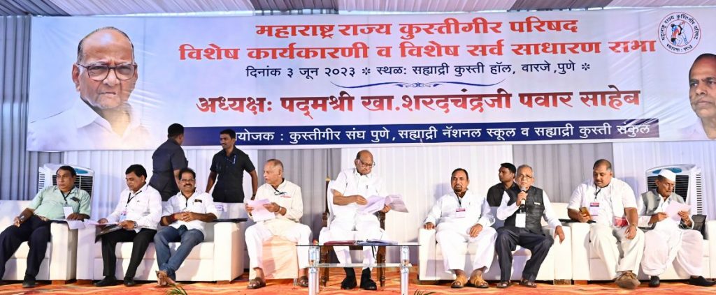 आज पुणे येथे सह्याद्री कुस्ती संकुल (वारजे) येथे महाराष्ट्र राज्य कुस्तीगीर परिषदेच्या विशेष कार्यकारणी व विशेष सर्वसाधारण सभा खा. शरद पवार यांच्या अध्यक्षतेखाली पार पडली.यावेळी कार्याध्यक्ष नामदेवराव मोहिते, सरचिटणीस बाळासाहेब लांडगे, उपाध्यक्ष सर्जेराव शिंदे, अर्जूनवीर काकासाहेब पवार प्रा. बंकट यादव ४० जिल्हा / शहर तालीम संघाचे प्रतिनिधींनी उपस्थित होते.सभेच्या सुरवातीला अध्यक्ष पवार यांनी मुबई उच्च न्यायालयाचा निकाल कुस्तीगीर परिषदेच्या बाजूने असून परिषदेचे अधिकार आबाधित आहेत. निकाल त्यांनी सभागृहास वाचन करून दाखवू निकालाबद्दल सभागृहास माहिती दिली. परिषदेच्या विशेष कार्यकारणी व विशेष सर्वसाधारण सभेत पुढीलप्रमाणे ठराव मंजूर करण्यात आले.