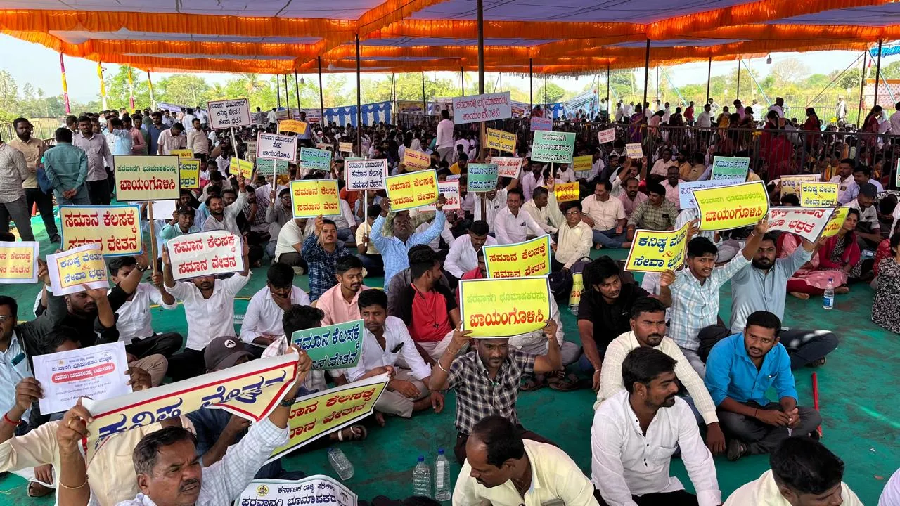 बेळगाव : राज्यातील परवानाधारक भूमापक अधिकारी वीस वर्षांपासून सातत्याने विविध जिल्ह्यांमध्ये आंदोलन करीत आहेत. राज्य सरकारने नेमून दिलेली सर्व कामे करूनही वेतनामध्ये तफावत ठेवण्यात आली आहे. समान काम समान वेतन असा आदेश असतानाही भूमापकांना वगळण्यात येत असल्याने गुरुवारी कर्नाटक राज्य परवानाधारक भूमापक संघाच्यावतीने सुवर्ण विधानसौधसमोर आंदोलन करण्यात आले. भूमापकांना शासकीय कर्मचारी मानून सर्व जबाबदाऱ्या देण्यात आल्या आहेत. परंतु, त्यांना इतर सुविधा मात्र देण्यात आलेल्या नाहीत. किमान वेतन तसेच सेवासुरक्षा निश्चित करण्यात आलेली नाही. राज्यात सहा हजारहून अधिक परवानाधारक भूमापक कार्यरत आहेत. त्यांना आरोग्य विमा, अपघात विमा, जीवनसुरक्षा यासारख्या कोणत्याही सुविधा उपलब्ध नाहीत. त्यातच सरकारने आणखी एक हजार परवानाधारक भूमापक भरती करण्याची घाई सुरू केली आहे. ही प्रक्रिया त्वरित थांबवावी, अशी मागणी परवानाधारक भूमापकांनी केली. यावेळी बेळगावसह विजापूर, बागलकोट, धारवाड यासह राज्यातील परवानाधारक भूमापक उपस्थित होते.