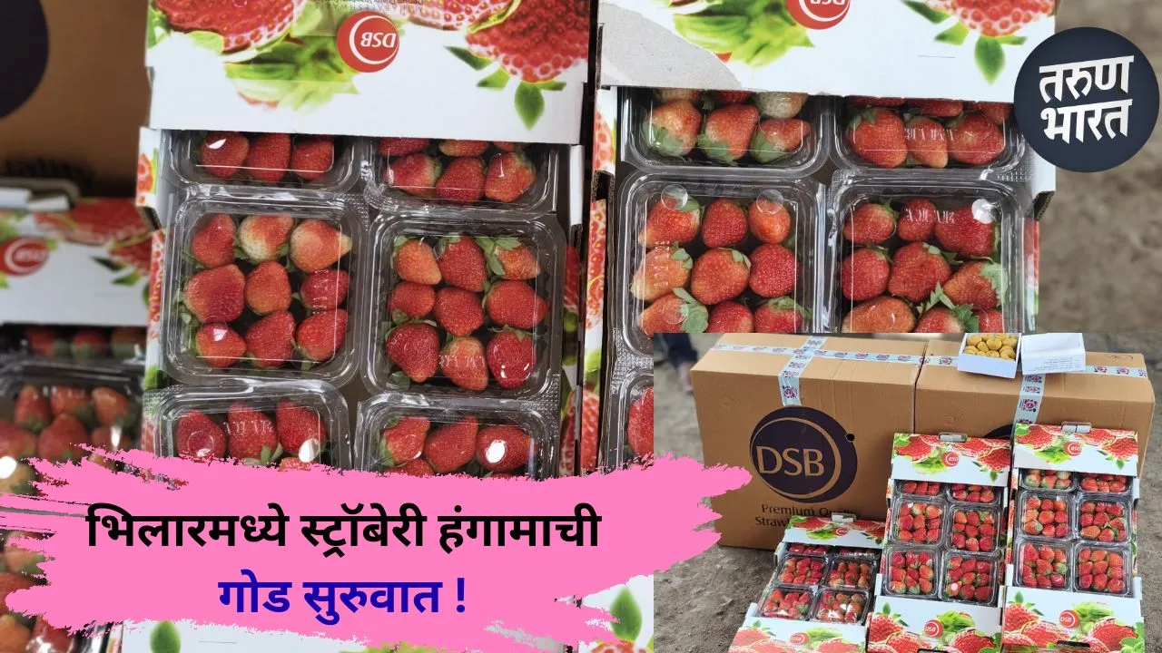 सध्या स्ट्रॉबेरी हंगामाला दहा ते पंधरा दिवस सुरू होण्यासाठी वेळ असतानाही भिलार परिसरात फळांची पहिली तोडणी सुरू झाली आहे. आज या पहिल्या ट्रेचे पूजन डीएसबी ग्रुपचे मालक दिनेश भिलारे यांच्या हस्ते पार पडले. यानंतर ही स्ट्रॉबेरी थेट मुंबई बाजारात रवाना करण्यात आली. पहिल्याच तोडणीला इतका उच्च दर मिळाल्याने संपूर्ण सातारा जिल्ह्यातील स्ट्रॉबेरी उत्पादक शेतकऱ्यांमध्ये उत्साहाचे वातावरण निर्माण झाले आहे.