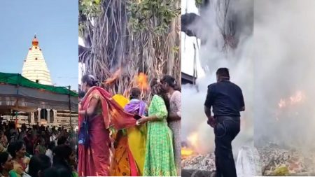 Ambabai temple kolhapur : अंबाबाई मंदिरात पूजा करत असताना अचानक झाडाने पेट घेतल्याने वडाची पुजा करणाऱ्या महिलांना पळता भुई थोडी…