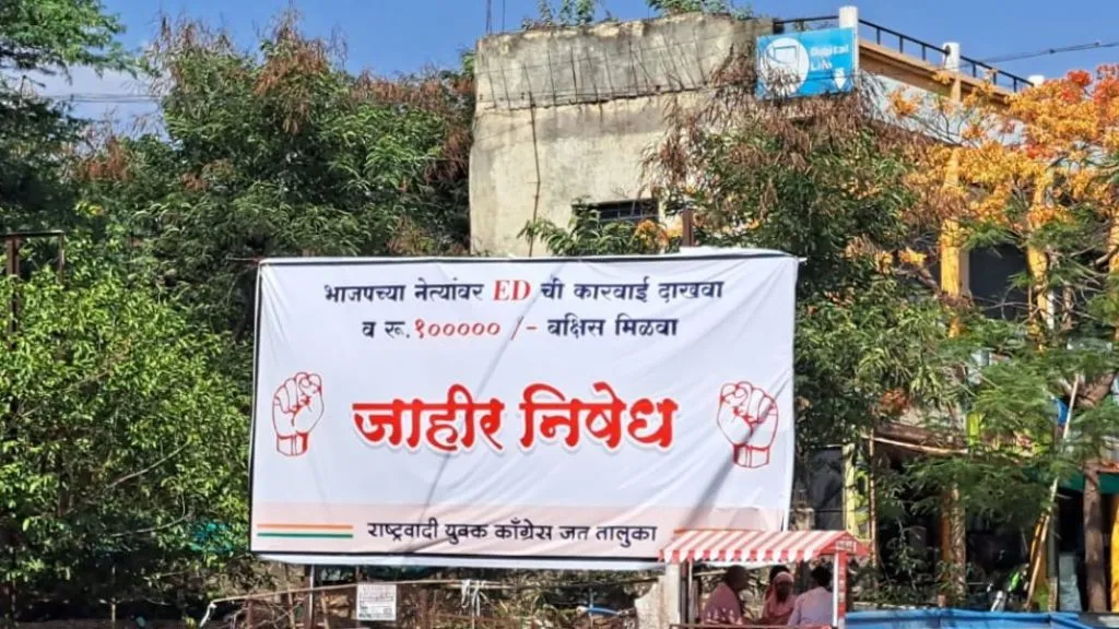जत मधील फलकाने जिल्हाभर चर्चा जत प्रतिनिधीदोन दिवसापूर्वी राष्ट्रवादी काँग्रेसचे प्रदेशाध्यक्ष तथा माजी मंत्री जयंत पाटील यांना ईडीने नोटीस बजावून…