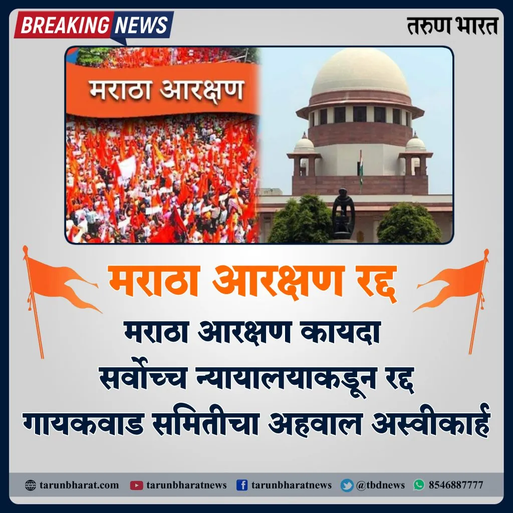 नवी दिल्ली/प्रतिनिधी संपूर्ण देशाचं लक्ष लागून राहिलेल्या मराठा आरक्षणावर निकाल आला आहे. सर्वोच्च न्यायालयाने मराठा आरक्षण रद्द केलं असून राज्य…