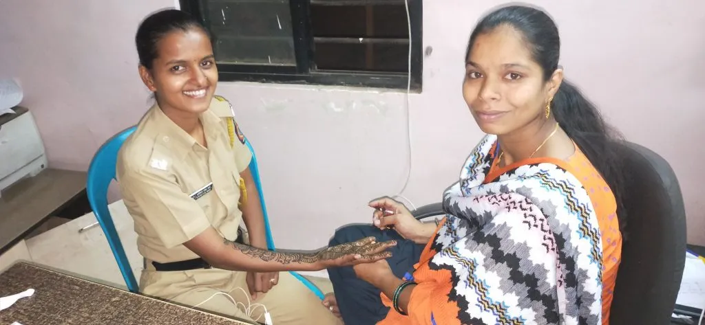 विवाहाला काही तासांचा अवधी… तरीही वधू कर्तव्यावर हजर बोरगावः एकीकडे कर्तव्य बजावत असतानाच आपल्या नववधू सहकार्याच्या हातावर मेहंदी काढताना बोरगाव…