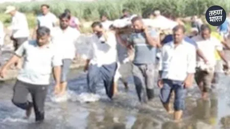 पुलाअभावी पाण्यातून अंत्ययात्रा स्मशानभूमीत जाण्यासाठी…