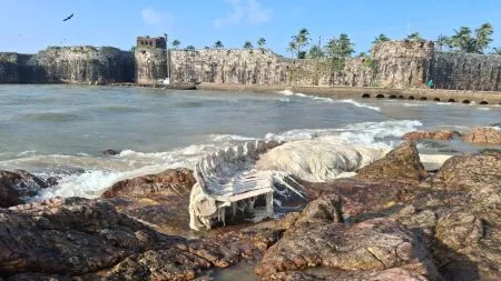 मालवण/प्रतिनिधी येथील ऐतिहासिक किल्ले सिंधुदुर्ग नजीकच्या खडकाळ भागात आज सकाळी एक भलामोठा शार्क माशाचा कुजलेल्या अवस्थेतील सांगाडा अडकलेला आढळून आला…
