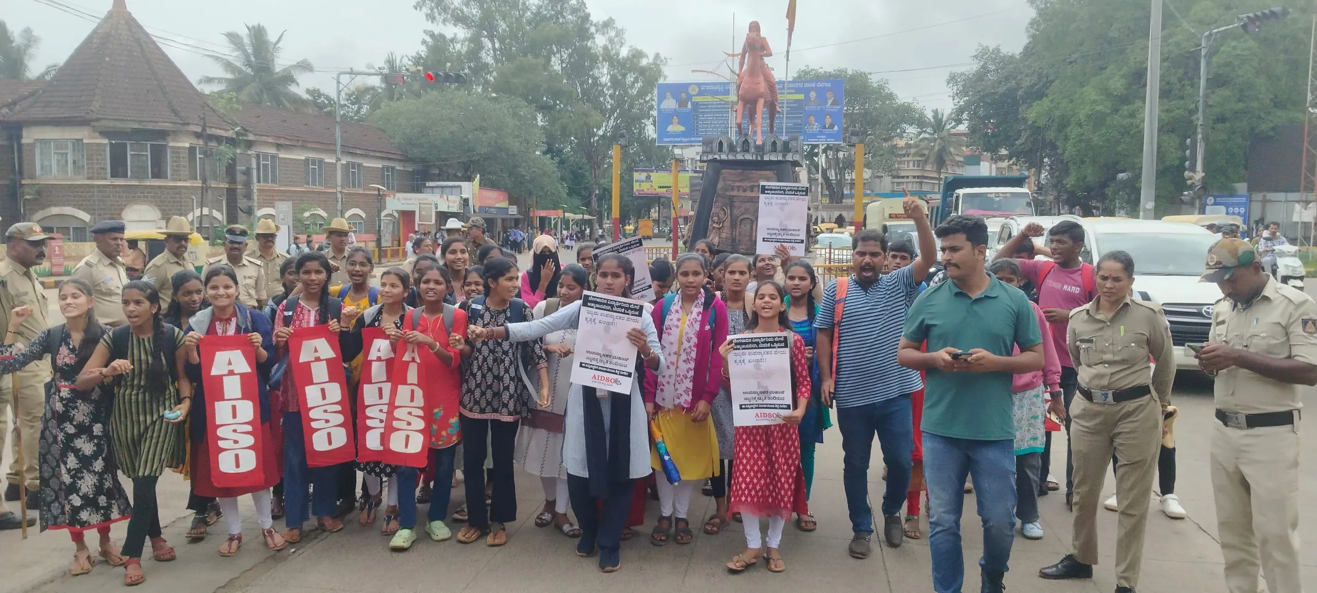 बेळगाव : बेंगळूर येथे एका विद्यार्थिनीवर झालेल्या अत्याचाराच्या विरोधात बुधवारी बेळगावमध्ये ऑल इंडिया डेमोक्रॅटिक स्टुडंट ऑर्गनायझेशनच्यावतीने मोर्चा काढण्यात आला. राज्यात महिलांवरील अत्याचारांचे प्रमाण वाढत असून शैक्षणिक संस्थांमध्ये असे प्रकार घडत असल्याने महिलांच्या सुरक्षेबाबत नाराजी व्यक्त करण्यात आली. राणी चन्नम्मा चौक येथे एआयडीएसओ संघटनेच्या पदाधिकारी व कार्यकर्त्यांनी घोषणा देत निषेध व्यक्त केला. एका महाविद्यालयीन विद्यार्थिनीवर अत्याचार करण्यासोबत तिला ब्लॅकमेल करून धमकी देण्यात आल्याचा प्रकार उघड झाला आहे. आश्चर्याची बाब म्हणजे गुन्हा दाखल करण्यात आलेल्या तिघांपैकी दोन व्याख्याते आणि एक तिचा मित्र आहे. शैक्षणिक संस्थांमध्ये जर असे प्रकार घडत असतील तर राज्यातील महिला सुरक्षित आहेत का? असा प्रश्न यावेळी विद्यार्थिनींनी उपस्थित केला. या घटनेची गंभीर दखल घेऊन सरकारने संबंधितांवर कठोर कारवाई करण्याची मागणी विद्यार्थ्यांनी जिल्हाधिकाऱ्यांकडे निवेदनाद्वारे केली. यावेळी एआयडीएसओचे राजू गाणगी यांच्यासह विद्यार्थी उपस्थित होते.