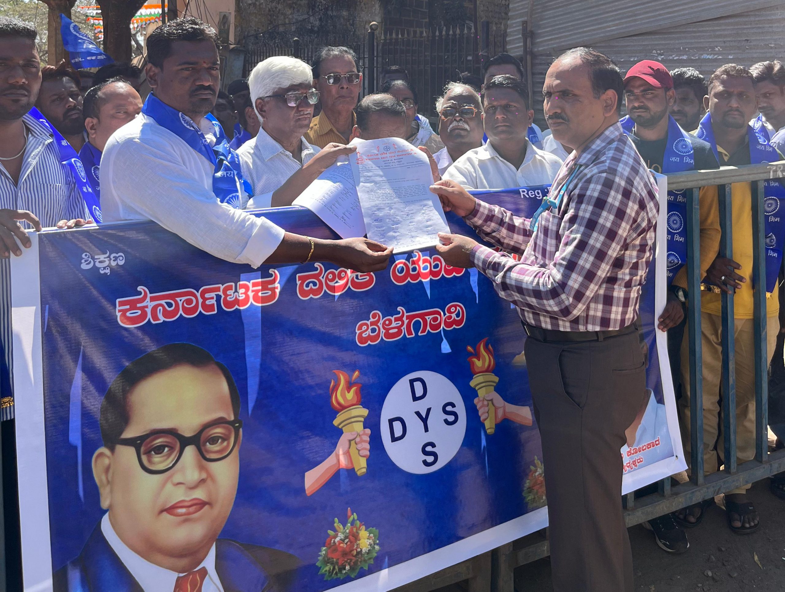 बेळगाव : कलबुर्गी जिल्ह्यातील कोटनूर गावामध्ये डॉ. बाबासाहेब आंबेडकरांच्या पुतळ्याचा अवमान करण्यात आला आहे. या घटनेचा निषेध करत घटनेत सहभागी असणाऱ्यांवर कठोर कारवाई करण्यात यावी, अशा मागणीचे निवेदन कर्नाटक दलित युवा संघातर्फे जिल्हाधिकाऱ्यांना देण्यात आले. महसूल निरीक्षक एस. एम. परगी यांनी निवेदन स्वीकारले. कोटनूर गावामध्ये डॉ. बाबासाहेब आंबेडकरांच्या पुतळ्याचा अवमान करण्यात आला आहे. असे प्रकार वारंवार घडत आहेत. एका थोर व्यक्तीचा करण्यात आलेला अपमान हा संपूर्ण देशाचा अपमान आहे. या घटनेचे गांभीर्य ओळखून प्रशासनाने अशा घटना पुन्हा घडू नयेत याची खबरदारी घ्यावी.घटनेत सहभागी असणाऱ्या संशयितांचा शोध घेऊन त्यांच्यावर कारवाई करण्यात यावी, अशी मागणी करण्यात आली. यावेळी महेश कोलकार, यल्लाप्पा कोलकार, महांतेश मॅगीनमनी आदी कार्यकर्ते उपस्थित होते.