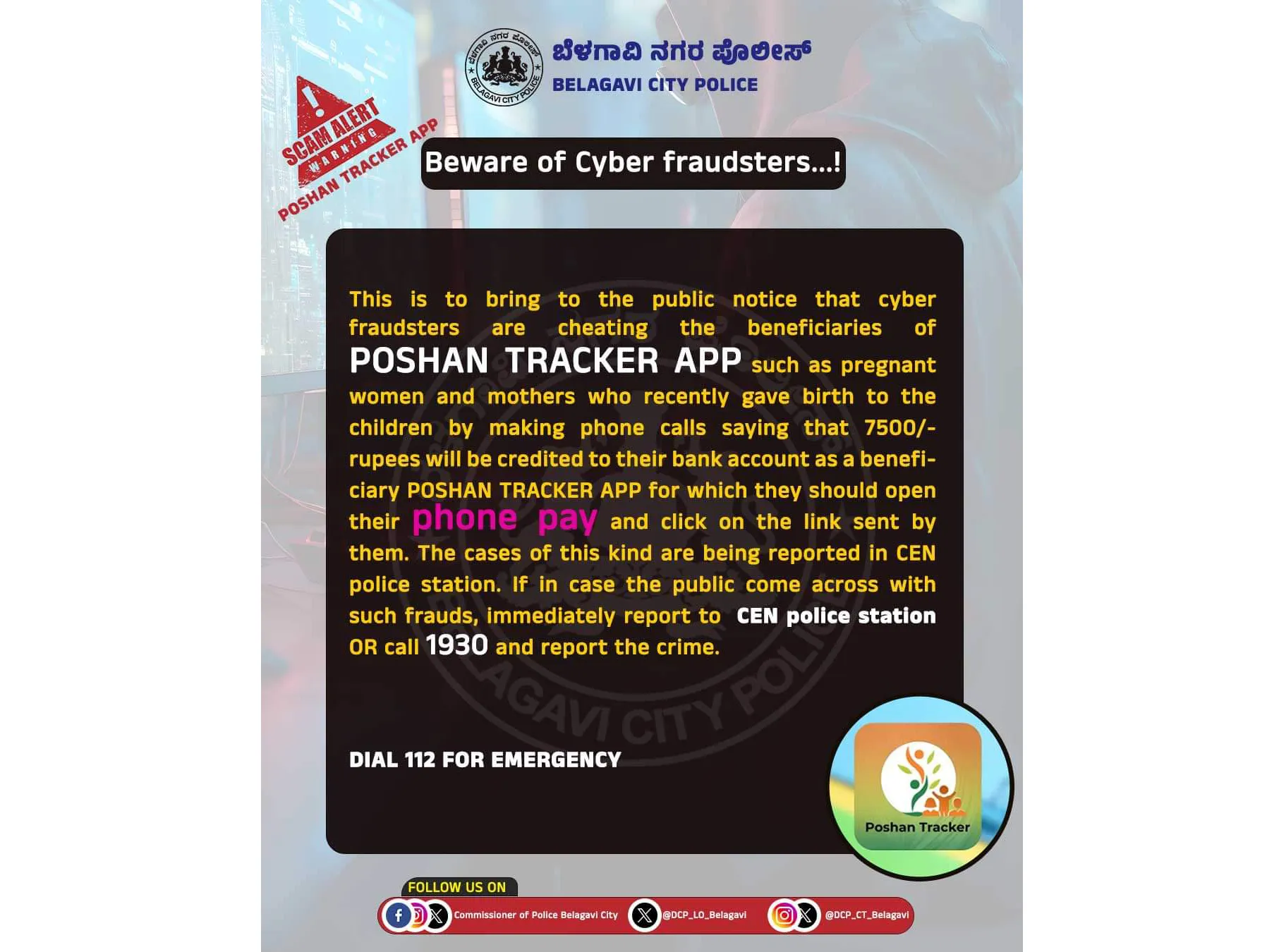 सायबर गुन्हेगारांकडून पोषण ट्रॅकर अॅप हॅक : लाभार्थ्यांच्या फोनवर फ्रॉड कॉल, बेळगाव शहरासह जिल्ह्यातही फसवणुकीचे प्रकार : सावध होण्याचे सरकारचे आवाहन