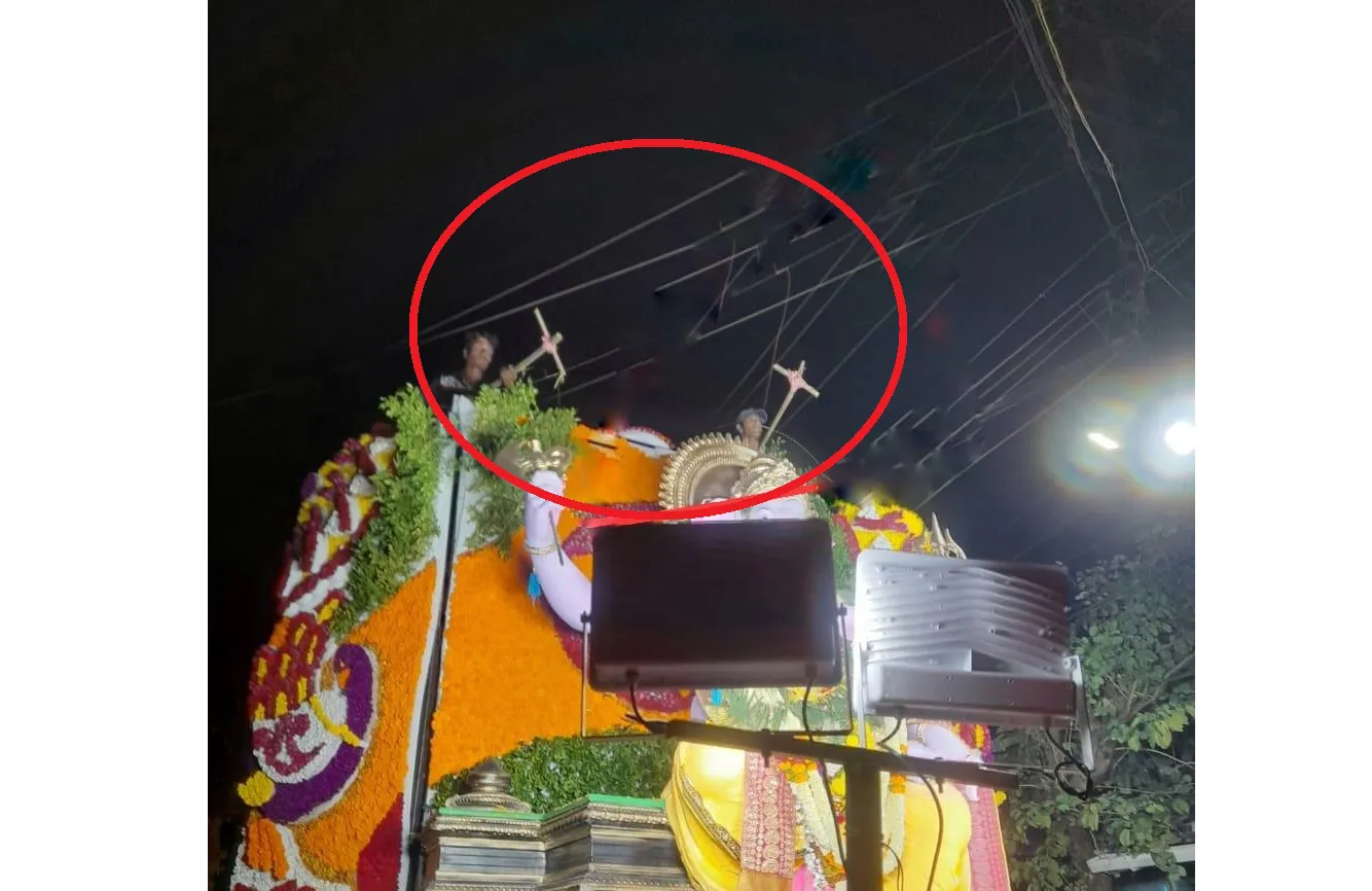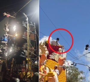हेस्कॉमने गणेशोत्सवापूर्वीच विसर्जन मार्गासह प्रत्येक गणेश मंडळ सार्वजनिक गणेशमूर्ती ने-आण करते, त्या मार्गावरील विद्युतवाहिन्यांची दुरुस्ती केली होती. परंतु, एका मंडळाने विसर्जन मार्गात ऐनवेळी बदल करत एका लहान गल्लीतून डीजे सिस्टीम व गणेशमूर्तीचा ट्रॅक्टर घालण्याचा प्रयत्न केला. कलमठ रोड येथे मध्यरात्री एका उच्च विद्युतभारित तारेचा डीजे सिस्टीमवरील स्क्रीनला स्पर्श झाला आणि त्या क्षणी ती स्क्रीन जळून गेली. सुदैवाने शेजारीच असणाऱ्या ट्रान्स्फॉर्मरमध्ये आरसीसीबी ‘ट्रिप’ झाल्याने धोका टळला. परंतु, जर टीसीवरील आरसीसीबी ट्रिप झाला नसता तर ट्रॉलीतील अनेकांना आपला जीव गमवावा लागला असता. मंडळांनी मूर्ती तर उंच केल्याच, त्याचबरोबर डीजे व त्यावर लावलेल्या स्क्रीनमुळे उंची आणखीन वाढली होती. काही ठिकाणी तर उंच मूर्तींवर येणाऱ्या विद्युतवाहिन्या बाजूला काढून मूर्ती पुढे न्यावी लागली. या सर्व प्रकारांमुळे विसर्जन मिरवणुकीला विलंब होत गेला. एकीकडे प्रशासनाने यावर्षीच्या गणेशोत्सव मिरवणुकीसाठी मोठा बंदोबस्त ठेवला होता. ठिकठिकाणी सीसीटीव्ही तसेच ड्रोन कॅमेऱ्यांद्वारे नजर ठेवली होती. परंतु, उंच गणेशमूर्तींमुळे वीजपुरवठा बंद करावा लागत होता.यामुळे सीसीटीव्ही कॅमेरेही कुचकामी ठरले.