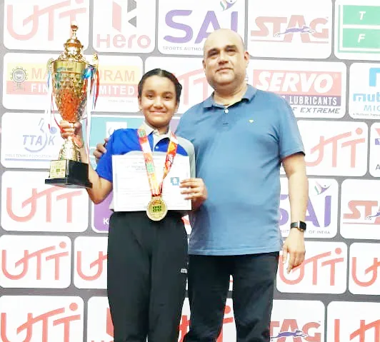 बेळगाव : केरळ येथील अलेपी येथे 84 व्या सबज्युनियर कॅडेट राष्ट्रीय युथ टेबल टेनिस स्पर्धेच्या अंतिम सामन्यात बेळगावची राष्ट्रीय अग्रमानांकित अव्वल खेळाडू तनिष्का कपिल काळभैरव हिने राष्ट्रीय दुसऱ्या मानांकित सातुर्था बॅनर्जी बंगाल हिचा 3-1 अशा गुण फरकाने पराभव करून सुवर्णपदक पटकावित बेळगावचे नाव दुसऱ्यांदा राष्ट्रीयस्तरावर झळकविले आहे. केरळ येथील अलेपी येथे घेण्यात आलेल्या 84 वी सबज्युनियर आणि कॅडट राष्ट्रीय युथ टेबल टेनिस स्पर्धेत 11 वर्षाखाली युथ गटात उपउपांत्यपूर्व फेरीत तनिष्का काळभैरवने तेलंगणाच्या महिमा हिचा 11-6, 11-5, 11-9 अशा गुण फरकाने पराभव करून उपउपांत्य फेरीत प्रवेश केला.nउपउपांत्य फेरीत तनिष्काने पश्चिम बंगालच्या मोपीया दास हिचा 11-7, 11-7, 11-5 असा पराभव करून उपांत्य फेरीत प्रवेश केला. उपांत्य फेरीत तनिष्काने पश्चिम बंगालच्या शाहिद शरिका हिचा 13-11, 11-7, 7-11, 11-5 अशा गुण फरकाने पराभव करून अंतिम फेरीत धडक मारली. अंतिम फेरीत राष्ट्रीय दुसऱ्या मानांकित बंगालच्या सातुर्था बॅनर्जी हिचा तनिष्काने 4-11, 9-11, 6-11, 11-1, 3-1 असा पराभव करून सुवर्णपदकावर आपले नाव कोरले.