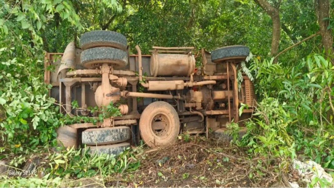 मुंबई- गोवा महामार्गाच्या झाराप पत्रादेवी बायपासवर मळगाव रेडकरवाडीलगत असलेल्या मूर्ती सिमेंट प्लांट नजीक टँकर पलटी झाला आहे. या टँकरमधून डिझेल गळती होत असल्याची माहिती स्थानिकांनी दिली आहे. तसेच गाडीचा चालक चालत चालत कुठेतरी निघून गेल्याचेही प्रत्यक्षदर्शींनी सांगितले आहे. याबाबत पोलिसात कोणतीही खबर दाखल करण्यात आलेली नाही.