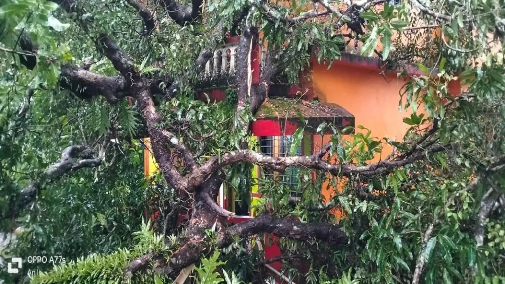 सिंधुदुर्ग जिल्ह्यात गेले अनेक दिवस मुसळधार पाऊस पडत आहे.वादळ व मुसळधार पडलेल्या पावसामुळे तळवडे येथे सावंतवाडी वेंगुर्ला मार्गांवर मुरारवाडी याठिकाणी पिंपळ वृक्ष पडल्यामुळे सावंतवाडी तळवडे वेंगुर्ला वाहतूक बंद झाली आहे.भला मोठा पिंपळ वृक्ष पण उन्मळून पडला आहे.त्यामुळे विद्युत पुरवठा पूर्ण खंडित झाला आहे.यामुळे मोठ्या प्रमाणात नुकसान झाले आहे.हा वृक्ष पूर्णपणे महामार्ग बंद पडला आहे.त्यामुळे पूर्णपणे वाहतूक बंद झाली असून वाहन चालक व प्रवासी वर्गाचे मोठी समस्या झाली आहे.तसेच तळवडे मुरारवाडी याठिकाणी किशोर नाईक यांच्या घरावर आंब्याचे झाड पडल्याने मोठी आर्थिक हानी झाली आहे.तळवडे गावात दोन दिवसापूर्वी तळवडे मिरीस्तेवाडी याठिकाणी पण वडाचा वृक्ष पडला होता.यात शालेय विद्यार्थिनीचा मृत्यु झाला होता तळवडे गावातील दुसरी घटना घडली आहे.सद्या गेले पंधरा दिवस मुसळधार पाऊस पडत असल्यामुळे पूर्ण जागा त्या दलदलीची बनली आहे.त्यामुळे झाडे पडत आहे सद्या वारा व पाऊस पडत असल्यामुळे याचा फटका सर्वसामान्य यांना बसत आहे.त्यामुळे झाडे उन्मळून पडत आहे.हि घटना सायंकाळी घडली यावेळी घटना घडल्यावर मोठ्या प्रमाणात ग्रामस्थ यावेळी उपस्थित होते तळवडे येथील ग्रामस्थ याच्या सहकाऱ्याने सावंतवाडी तळवडे वेंगुर्ला मार्ग मोकळा करण्याचे काम सुरु आहे