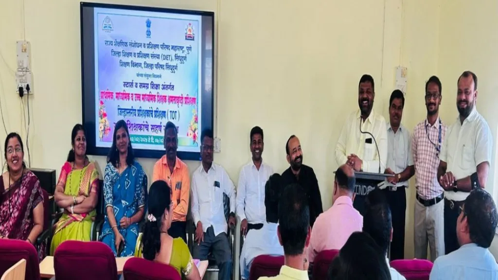 राज्य शैक्षणिक संशोधन व प्रशिक्षण परिषद पुणे आयोजित स्टार्स व समग्र शिक्षा अंतर्गत प्राथमिक , माध्यमिक व उच्च माध्यमिक स्तर शिक्षक समृद्धी प्रशिक्षण २.० जिल्हास्तरीय प्रशिक्षण दि. ०३ ते ०७ फेब्रुवारी या कालावधीत जिल्हा शिक्षण व प्रशिक्षण संस्था,ओरोस येथे होत आहे . या प्रशिक्षणासाठी सिंधुदुर्ग जिल्हयातील जवळजवळ १४० शिक्षकांची निवड झाली आहे .या प्रशिक्षणाचे उद्घाटन सिंधुदुर्ग जिल्हा डाएटचे प्राचार्य श्री राजेंद्र कांबळे,ज्येष्ठ अधिव्याख्याता श्री आर पी जाधव,अधिव्याख्यात्या श्रीम स्नेहल पेडणेकर,तज्ञ मार्गदर्शक कर्पूरगौर जाधव, राजू वजराटकर, चंद्रकांत सावंत, नागेश कदम, प्रिती पांचाळ , पूर्वा शिरसाट , प्रताप यादव व प्रकाश कानुरकर आदी मान्यवर उपस्थित होते. नवीन शैक्षणिक धोरणानुसार अभ्यासक्रमात होणारे बदल, क्षमतांवर आधारित अध्ययन ,अध्यापन प्रक्रिया,तसेच इतर महत्वाच्या बदलांबाबत हे प्रशिक्षण असून येणाऱ्या महिनाभरात जिल्ह्यातील सर्व अनुदानित व स्थानिक स्वराज्य संस्थामधील इयत्ता पहिली ते बारावीच्या शिक्षकांना हे प्रशिक्षण देण्यात येणार आहे. तसेच या प्रशिक्षणादरम्यान सर्व प्रशिक्षणार्थ्यांना जेवण आणि चहाची व्यवस्था केली होती. त्यामध्ये राज्यात प्रथम कोणत्याही प्रशिक्षणात कागदी कप आणि डिश ऐवजी स्टील चे कप आणि भांडी वापरली गेली.त्यामुळे या प्रशिक्षणातून पर्यावरण पूरक संदेश अप्रत्यक्षित्या देण्यात आला.