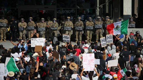 अमेरिकेतील प्रांत कॅलिफोर्नियाच्या लॉस एंजिलिसमध्ये 4 दिवसांपासून सुरू असलेल्या हिंसेत आतापर्यंत 2 जणांचा मृत्यू झाला आहे. शहरात अवैध स्थलांतरितांवर होत असलेल्या कारवाईच्या विरोधात हिंसक निदर्शने होत आहेत. या निदर्शनांवर नियंत्रण मिळविण्यासाठी ट्रम्प प्रशासनाने आणखी 2 हजार नॅशनल गार्ड्स तैनात करण्याचा निर्णय घेतला आहे, यामुळे तैनात होणाऱ्या नॅशनल गार्ड्सची एकूण संख्या 4 हजार होणार आहे. याचबरोबर 700 मरीन कमांडो देखील तैनात करण्याचा निर्णय घेण्यात आला आहे.