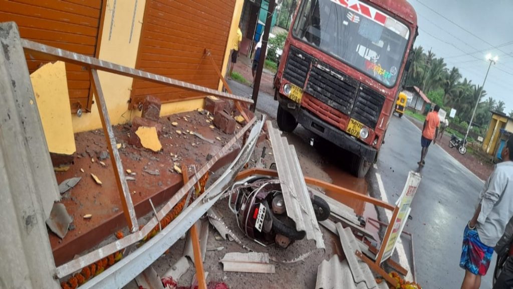 देवगड – निपाणी महामार्गावर जामसंडे दिर्बादेवी स्टॉप नजीक भरधाव एस. टी. ची विरुद्ध दिशेला जात दुकानाच्या पत्रा शेडला जोरदार धडक. या धडकेमुळे याचवेळी समोरून येणाऱ्या दुचाकीवर शेड कोसळली. त्यात दुचाकी स्वार व त्याच्या मागे बसलेला त्याचा भाऊ दोघे गंभीर जखमी झाले. हा अपघात शनिवारी सकाळी ६.३० वा सुमारास घडला.