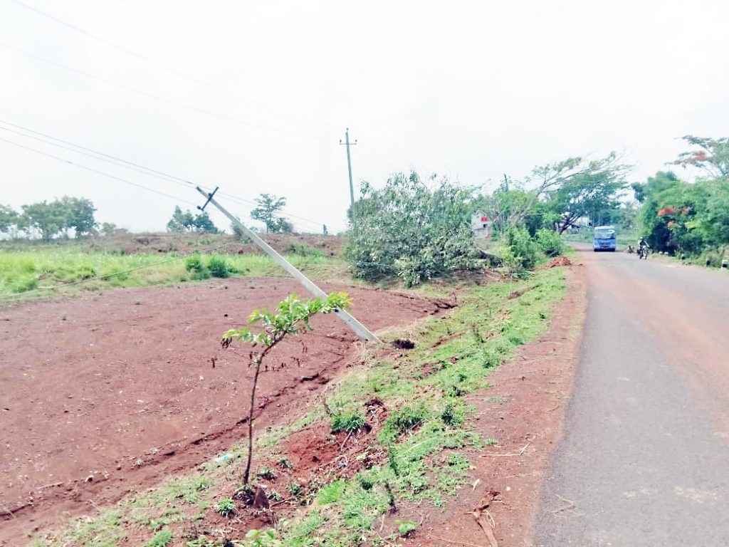 हंदिगनूर पंचक्रोशीतील केदनूर, मण्णीकेरी, बोडकेनट्टी, कुरीहाळ आदी भागात बुधवारी रात्री वादळी वाऱ्याने अक्षरश: धुमाळूक घातला होता. यामुळे या परिसरातील ग्रामस्थ भयभीत झाले होते. विजांच्या कडकडाटासह वाऱ्याने भयानक रूप धारण केल्याने लोकांना बाहेर पडणेही भीतीचे वाटत होते. केदनूर-मण्णीकेरी मार्गावरील अनेक झाडे उन्मळून शेतवडीत पडल्याचे चित्र दिसत होते. शिवाय हंदिगनूर-बोडकेनट्टी, कुरीहाळ, राजगोळी मार्गावरही ठिकठिकाणी झाडे उन्मळून पडली होती. मार्गावर पडलेली झाडे मशीनच्या साहाय्याने कापून रस्ता खुला करण्यात आला. तसेच झाडे उन्मळून पडल्याने याचा विद्युत खांब-वीजतारांवर परिणाम झाला आहे. ठिकठिकाणी विद्युतखांब कोसळून तारा तुटल्या आहेत. त्यामुळे या परिसरातील सर्व खेड्यांचा विद्युतपुरवठा खंडित झाला आहे.