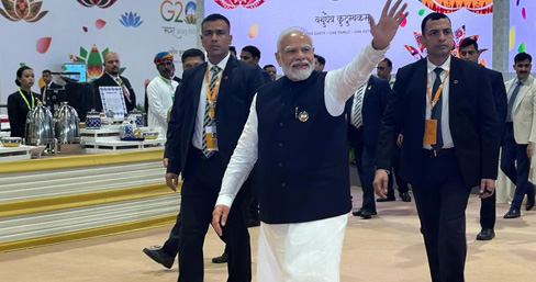 दिल्लीतील जी-20 शिखर परिषदेच्या समारोपानंतर पंतप्रधान नरेंद्र मोदी सायंकाळी प्रगती मैदानातील भारत मंडपमच्या आंतरराष्ट्रीय मीडिया सेंटरमध्ये पोहोचले. मीडिया सेंटरमध्ये फिरत असताना, पंतप्रधान मोदींनी हस्तांदोलन करत जगभरातील पत्रकारांना अभिवादन केले. फिरताना त्यांनी काही पत्रकार आणि छायाचित्रकारांशी हस्तांदोलनही केले.