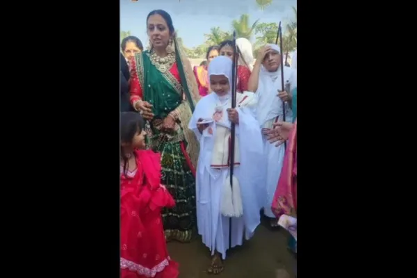 गुजरातच्या सूर येथील हीरेव्यापारी संघवी मोहन भाई यांची नात आणि धनेश-अमीबेन यांची 9 वर्षीय मुलगी देवांशीने संन्यास घेतला आहे. देवांशीचा दीक्षा महोत्सव वेसूमध्ये 14 जानेवारी रोजी सुरू झाला होता. बुधवारी सकाळी 6 वाजल्यापासून तिची दीक्षा सुरू झाली. देवांशीने 35 हजारांहून अधिक लोकांच्या उपस्थितीत जैनाचार्य कीर्तियशसूरीश्वर महाराज यांच्याकडून दीक्षा घेतली आहे.
