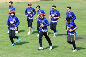 संघ-अफगाणिस्तान : हशमतुल्लाह शाहिदी (कर्णधार), रहमानउल्ला गुरबाज, इब्राहिम झद्रान, रियाझ हसन, रहमत शाह, नजीबुल्लाह झद्रान, मोहम्मद नबी, इक्रम अलीखिल, अजमतुल्लाह उमरझाई, रशिद खान, मुजिब उर रहमान, नूर अहमद, फजलहक फाऊखी, अब्दुल रेहमान आणि नवीन उल हक.