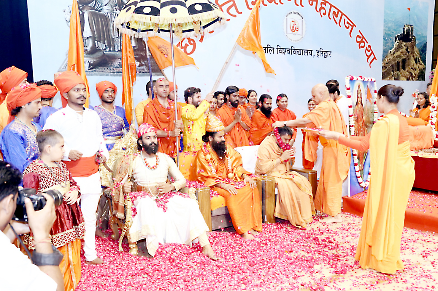 हरिद्वार : परमपूज्य योगऋषी स्वामी रामदेव महाराज यांच्या 30 व्या सेवानिवृत्तीदिनाच्या शुभ मुहूर्तावर आणि रामनवमीनिमित्त आयोजित केलेल्या ‘यशोगाथा छत्रपती शिवाजी महाराज’ कथेचा समारोप पतंजली विद्यापीठाच्या सभागृहात झाला. परमपूज्य स्वामी श्री. गोविंददेव गिरीजी महाराज यांनी छत्रपती शिवाजी महाराज यांच्या जीवनावर प्रकाशझोत टाकला. यावेळी स्वामी रामदेव महाराज आणि पूज्य आचार्य बाळकृष्णजी महाराज यांनी सर्व देशवासियांना रामनवमीच्या शुभेच्छा दिल्या आणि पूज्य गोविंददेव गिरीजी महाराज यांना कथा सुरू करण्याची विनंती केली. ‘छत्रपती शिवाजी महाराज’ कथेच्या समारोपप्रसंगी बोलताना स्वामी गोविंद देव गिरीजी महाराज म्हणाले की, रामायण आणि महाभारतातील सर्व गुण एकत्र करून तयार झालेले संयोजन म्हणजे शिवाजी महाराज होय. हजार वर्षांच्या गुलामगिरीनंतर भारताचा स्वाभिमान जागृत करणारी पहिले व्यक्ती म्हणजे छत्रपती शिवाजी महाराज यांचा उल्लेख करावा लागेल.