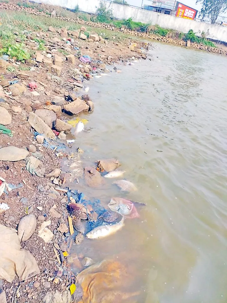 येथील मेन रोडनजीक थोरले तलाव नावाचा तलाव आहे. अलीकडेच या तलावाच्या सभोवती स्मार्ट सिटी योजनेंतर्गत सौंदर्यीकरणही करण्यात आले आहे. मात्र, गेल्या चार दिवसांपासून सतत मासे मृत्युमुखी पडत असल्याचा प्रकार घडत आहे. त्यामुळे तलावातील पाणी दूषित झाले आहे की अन्य कोणत्या कारणाने मासे मृत्युमुखी पडत आहेत हे पाहणे गरजेचे आहे. यासाठी महानगरपालिकेने तातडीने योग्य ती खबरदारी घेऊन उपाययोजना करावी, अशी मागणी होत आहे.