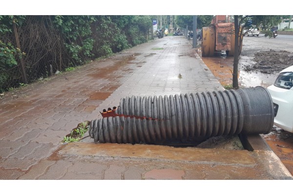 दोन महिन्यांपूर्वी जिल्हाधिकारी नितेश पाटील यांनी याठिकाणी पाहणी करून सार्वजनिक बांधकाम खात्याच्या अधिकाऱ्यांना सूचना केल्या होत्या. मात्र त्याकडे त्यांनी दुर्लक्ष केल्याचे दिसून येत आहे. फुटपाथवरील चेंबरचे झाकण खाली पडले आहे. त्याठिकाणी मोठा ख•ा पडला असून प्लास्टिकचा मोठा पाईप टाकण्यात आला आहे. रात्रीच्यावेळी हे धोकादायक असून तातडीने त्या फुटपाथची दुरुस्ती करावी, याचबरोबर रस्त्याचीही दुरुस्ती करावी, अशी मागणी होत आहे.
