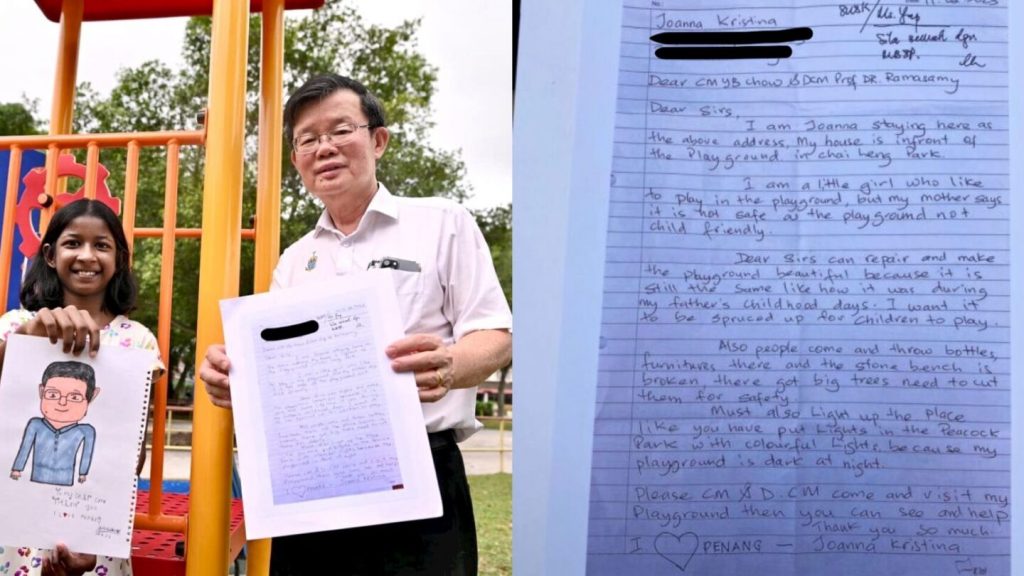 10 वर्षीय जोअन्ना सध्या चर्चेत आहे. मलेशियाच्या पेनांगमध्ये राहणाऱ्या जोअन्नाने पेनांगच्या मुख्यमंत्र्यांना पत्र लिहून उत्तम क्रीडामैदानाची मागणी केली. मुख्यमंत्री चाउ कोन येऊ यांनी पत्र वाचल्यावर त्वरित मुलीच्या भागातील क्रीडामैदानाचे काम सुरू करविले आहे. मैदानची स्थिती खराब असल्याने आई खेळण्यासाठी जाऊ देत नाही असे जोअन्नाने पत्रात नमूद पेले होते.