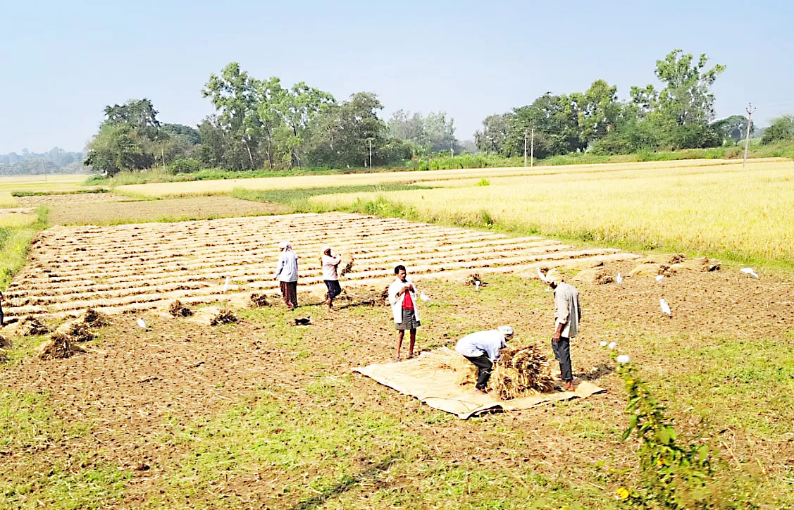 परतीच्या पावसाने भात पिके आडवी झाली. शेतशिवारात पाणी साचले होते. दहा बारा दिवसांपासून उघडीप मिळाल्याने हे भातपीक पुन्हा वाळून आले. यामुळे या भाताची कापणी शेतकऱ्यांनी केली आहे. काही शेतकरी कापणी केलेल्या भाताची खळ्यावरच मळणी करीत आहेत. सुगी हंगामात धान्यरुपी साठा जमा करण्याच्या कालावधीतच पुन्हा ढगाळ वातावरणाचे सावट शेतकऱ्यांसमोर उभे ठाकले आहे. तालुक्यात बासमती, इंद्रायणी, शुभांगी, सोनम, सोना मसूरा, मधुरा, भाग्यलक्ष्मी, चिंटू, इंटाण, दोडगा, जया व इतर विविध जातींची भातपिके घेण्यात आली आहेत. परतीच्या पावसाने उघडीप दिल्याने बळीराजा सुगी हंगाम साधण्यासाठी धडपडताना दिसत आहे. बुधवारी वातावरणात कमालीचा बदल झाला. ढगाळ वातावरणामुळे पाऊस येणार की काय, याची चिंता शेतकऱ्यांना लागून राहिलेली आहे.